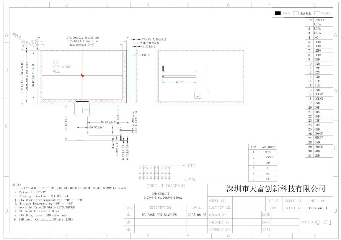 Tänu kõrgele eraldusvõimele 1024 × 600; taustvalgustuse eluiga ≥ 30 000 tundi, IPS-i vaba vaatenurk 7,0-tolline suure läbilaskvusega IPS õhuke lahtrisisene puuteekraani moodul, sobib selle õhu jaoks suurepäraselt.